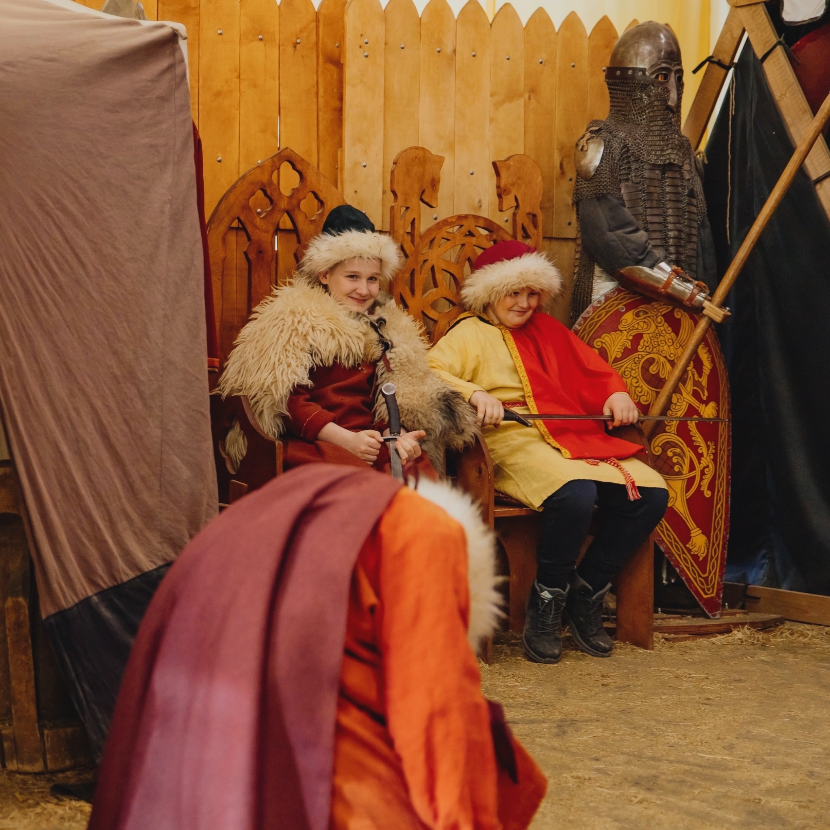 Вас ждут мастер-классы: стрельба из арбалета и лука, бой на безопасном оружии, нанесение набивного рисунка на глину/ткань, письмо на восковых дощечках. И конечно можно примерить доспехи и платья с украшениями тех веков!